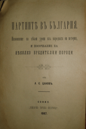 Корица на книгата „Партиите в България“ от А. С. Цанов