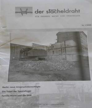 Те издават изключително интересното списание за свобода, право и демокрация „Бодлива тел“ (DER STACHELDRAHT), за което имам честта да бъда абониран и го следя от години. Предлагам на вашето внимание една статия от брой 1 за 2020 г. На корицата на списанието се виждат последните остатъци от сграда Nr. 6 от някогашната централа на ЩАЗИ в Берлин-Лихтенберг. Тук би могъл да започне строеж на един нов архив. За съжаление, според г-н Домбровски „Както обикновено и събарянето, и започването на нов строеж са обект на нескончаеми дискусии, които тук освен финансови, са и политически.“