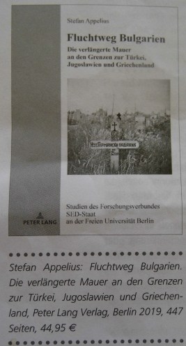 Някои от тях той успява да разпита лично. Всичко това ни е добре познато: те обикновено или „не знаят нищо“, или оспорват участието си в преследванията, или ги оправдават. Безмилостността и старанието на този апарат да оспори истината и до днес звучи потресаващо… Всичко това обаче, е надминато от действията на българските гранични власти. Повечето от изследванията на автора показват, че при смъртните случаи на границата, става дума за истински безмилостни екзекуции на бегълците от страна на българските граничари. Най-често убитите се заравят веднага в изкопани дупки, така че роднините им никога да не могат да посетят техните гробове. Едва през 1975 г. ГДР и България съвместно решават, че телата на „жертвите“ ще бъдат или пренасяни в Германия, или погребвани в публично българско гробище, при спазване на всички хигиенни условия“. Колкото до деликатния проблем с отчаяните родители, които и до днес продължават да търсят местонахождението на убитите си деца, единственото, което може да се направи, e да се намери начин да им се обясни същността на българския комунистически режим.